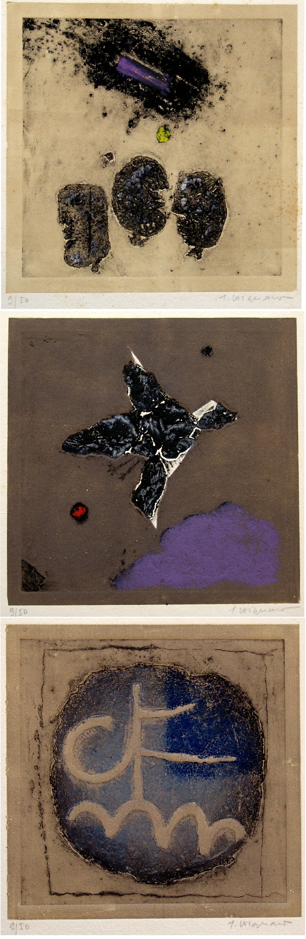es. 9/50, cartella con 3 incisioni firmate dall’artista in basso a destra, Edizioni MDE di Roma