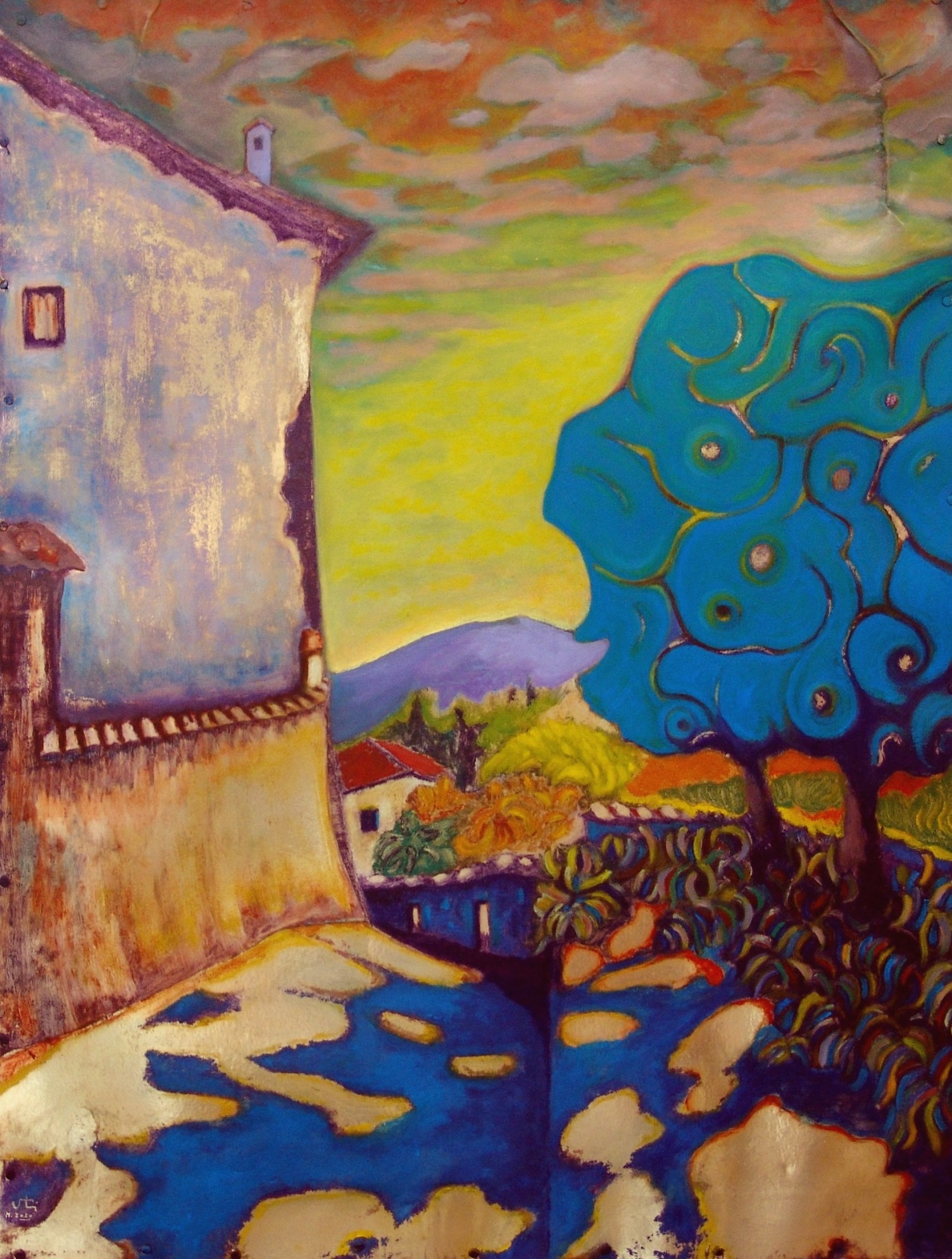 tecnica mista su cartone applicato su tavola, 80x60 cm