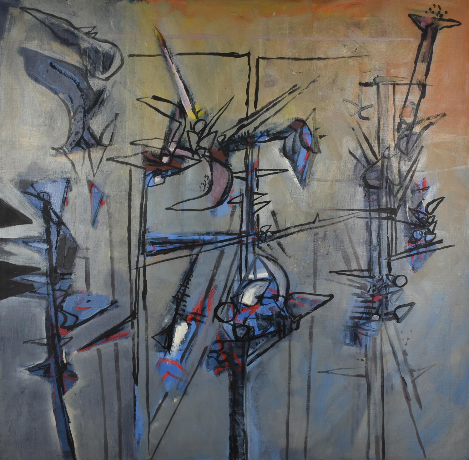 Giovanni Checchi PRESENZE olio su tela, cm 100x100 sul retro: titolo e data...