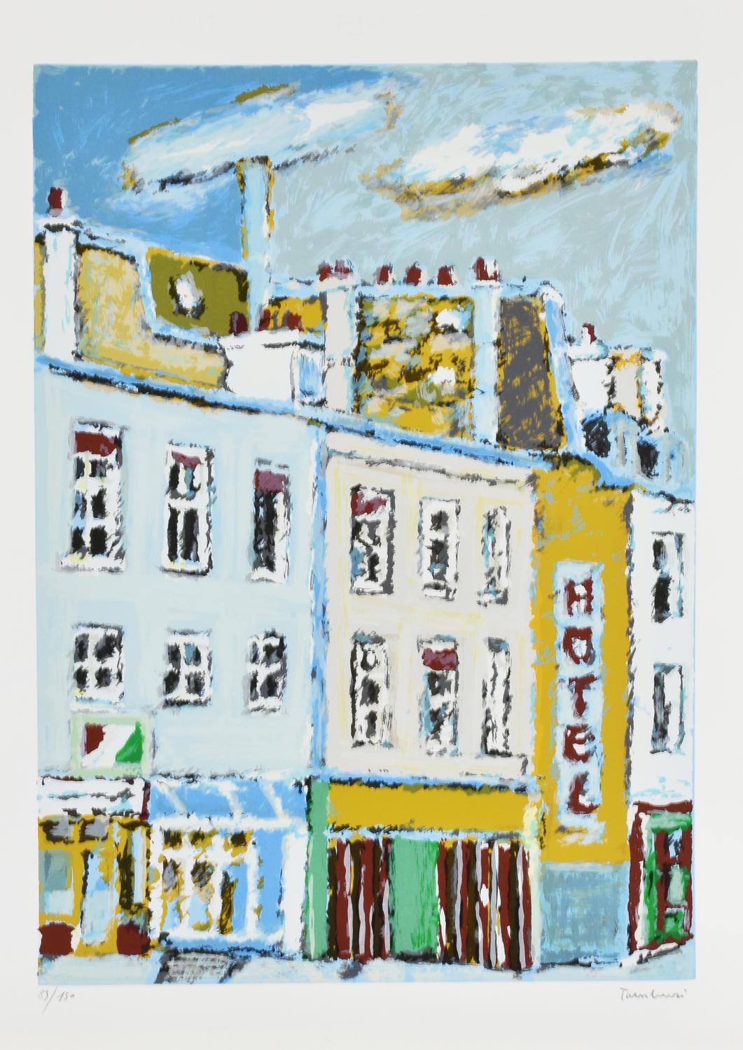 Lotto 63 | Orfeo Tamburi CASE PARIGINE litografia su carta Fabriano, cm 70x50 esemplare...