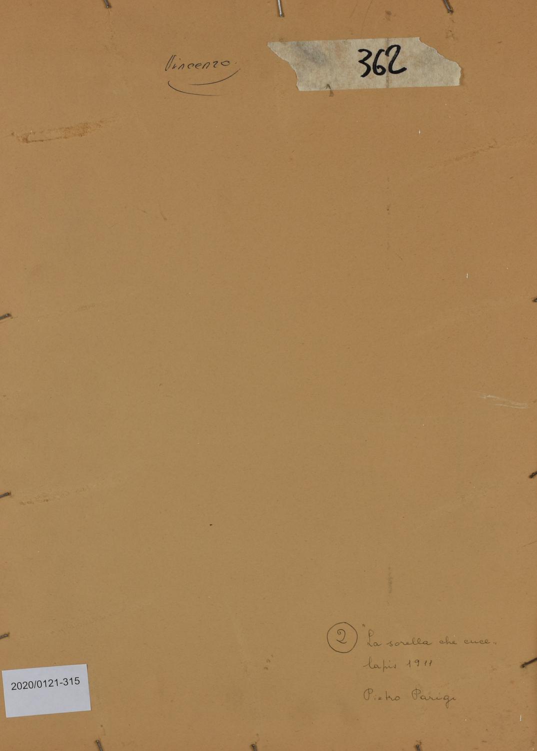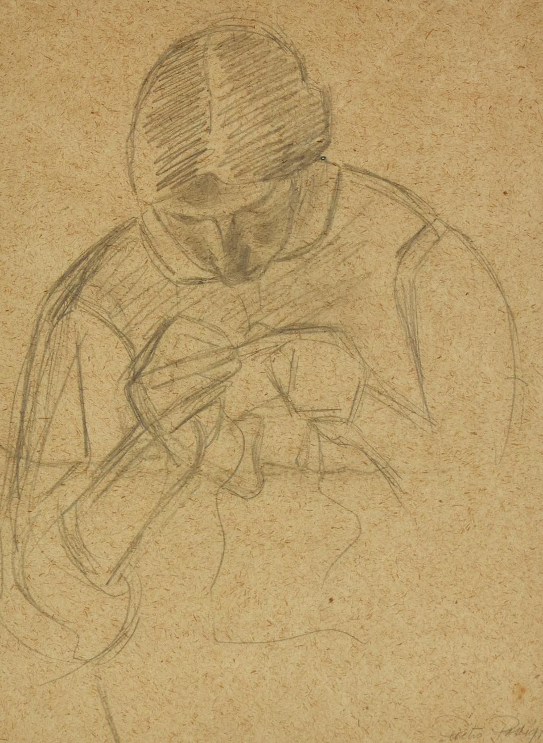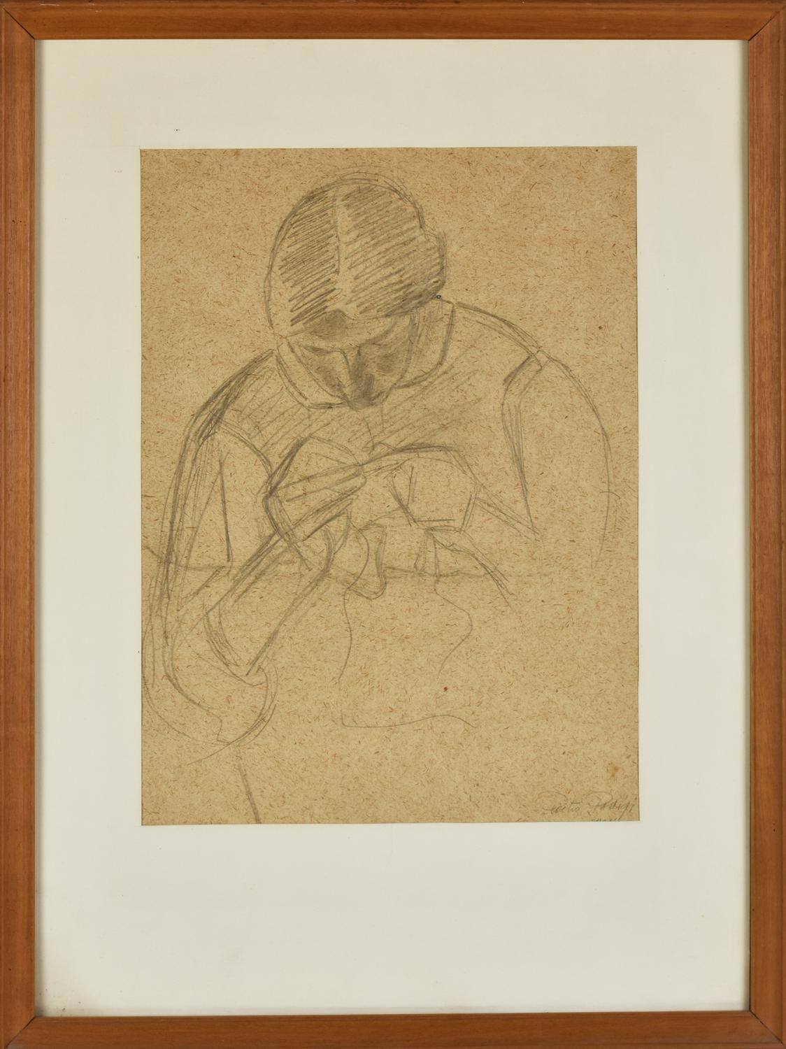 Pietro Parigi LA SORELLA CHE CUCE matita su carta, cm 33x24 firma e data...