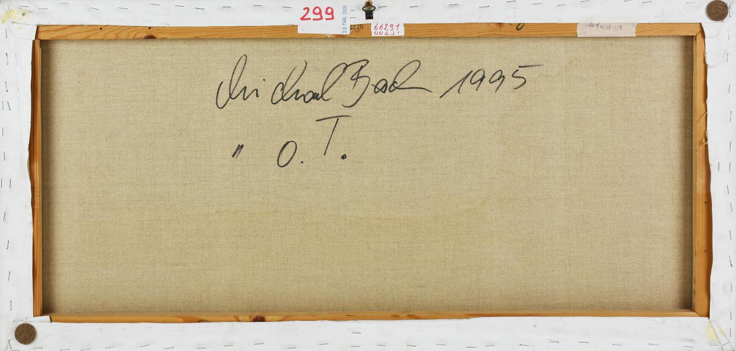 Ignoto VEDUTA DI CITTA' CON PONTE acrilico su tela, cm 40x83 sul retro: firma...