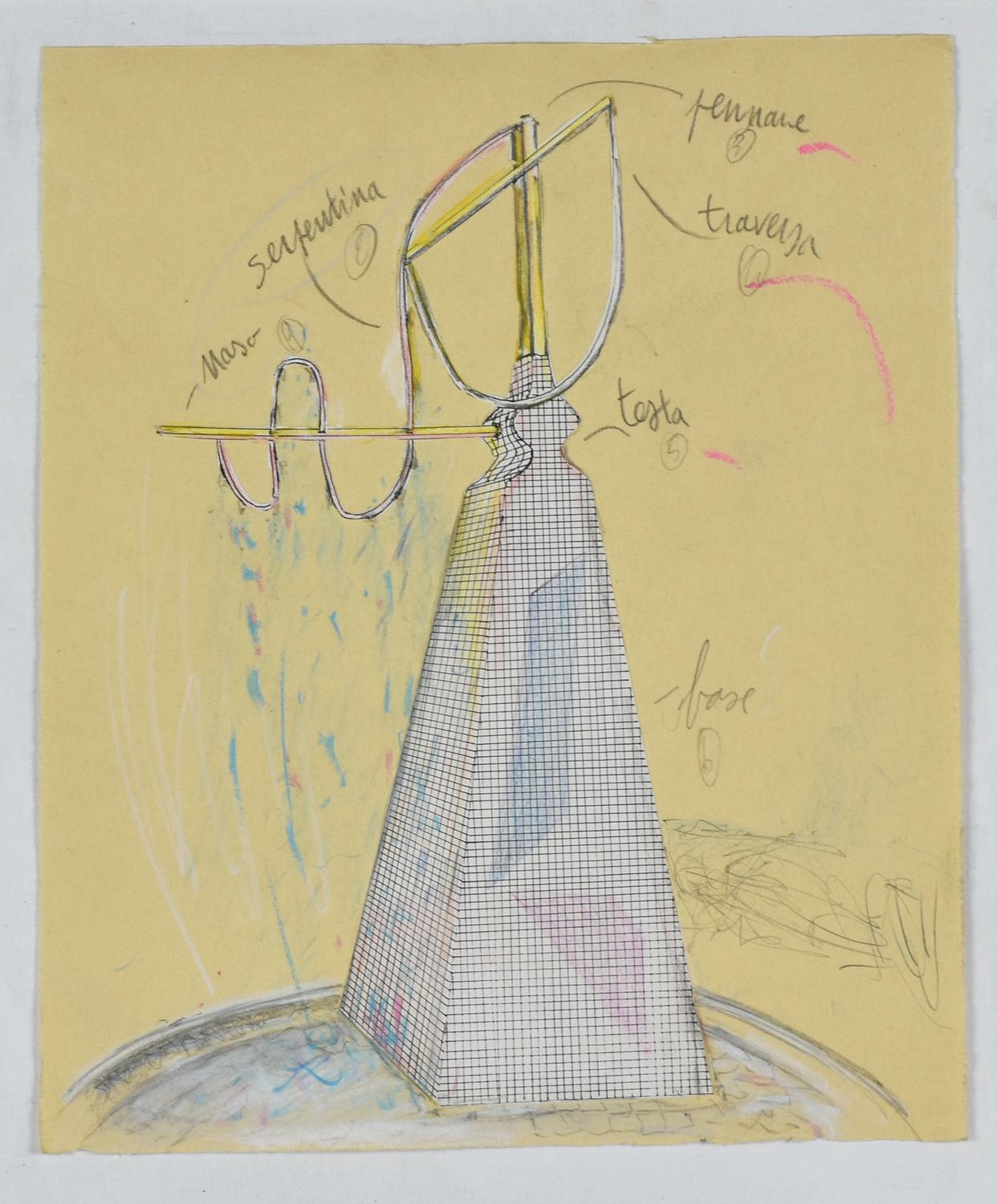 Lotto 131 | Anonimo PROGETTO PER SCULTURA tecnica mista e collage su carta, cm 28x23,5...