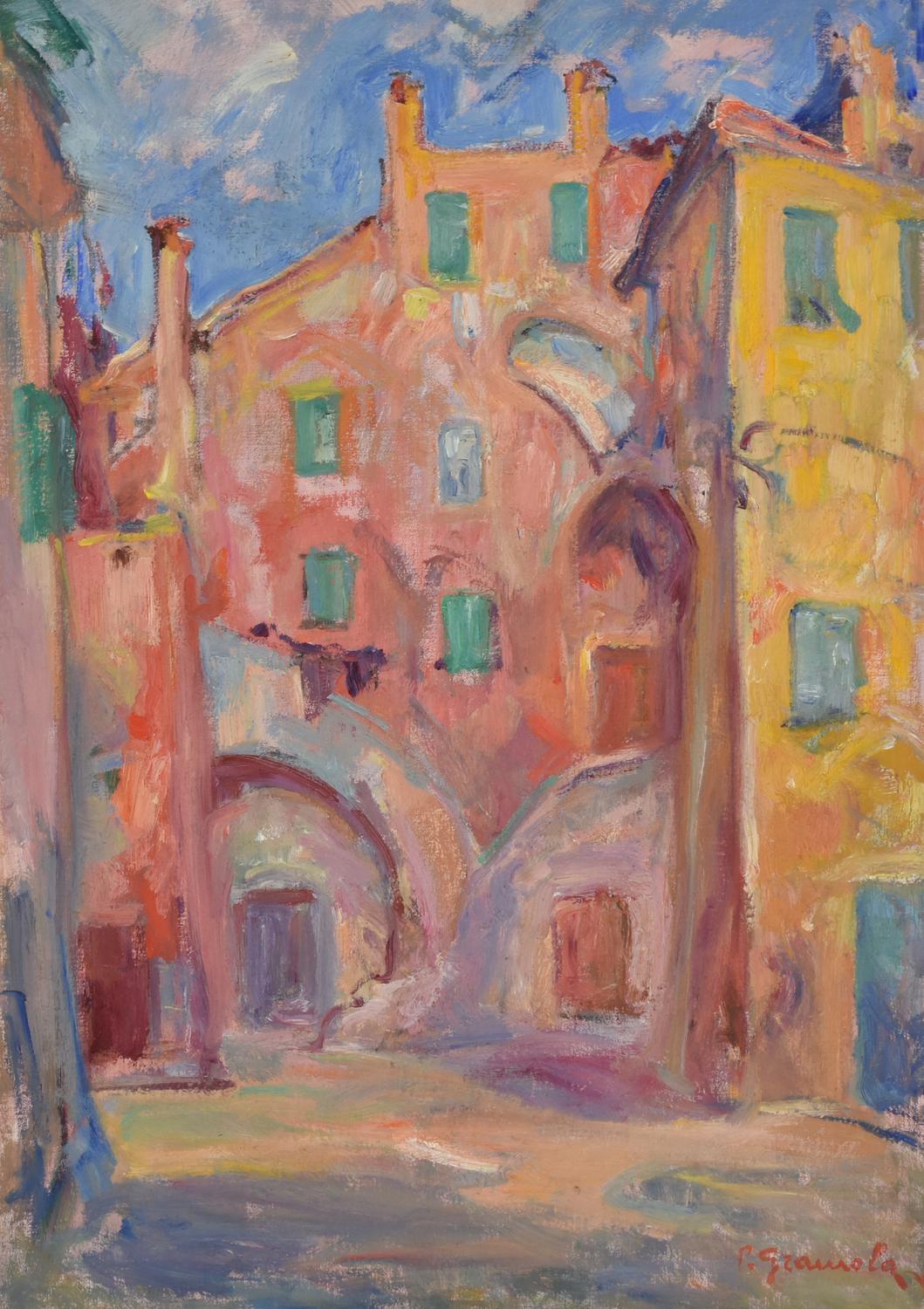 Pinetta Gramola VECCHIE CASE A IMPERIA olio su tela, cm 70x50 firma sul...