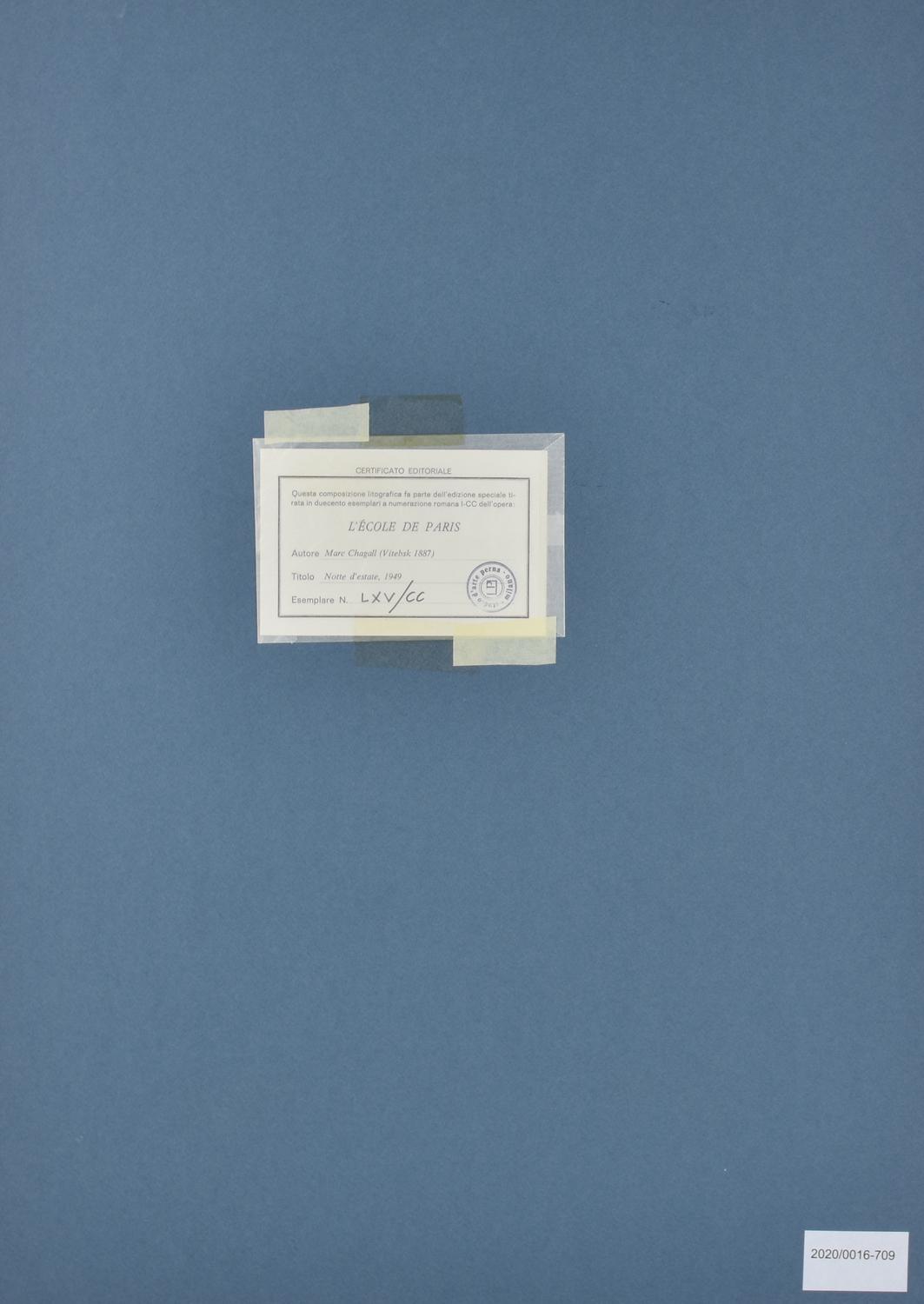 Marc Chagall NOTTE D'ESTATE litografia su carta (d'apres), cm 48x33,5; es....