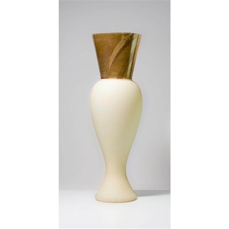 Vaso in vetro satinato della serie “Re Regina Principe” con collo lavorato con patina dorata, 1997.
