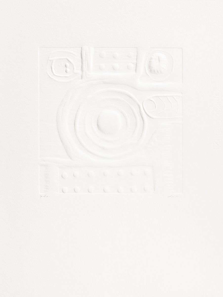 Cartella contenente un testo di Italo Calvino e 1 incisione a secco di Franca Ghitti