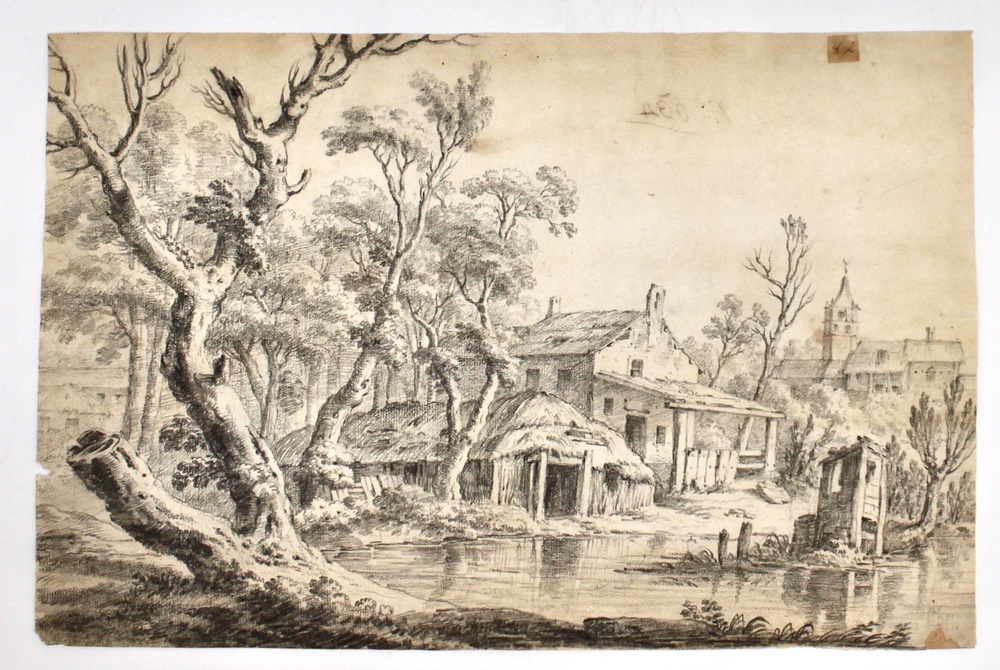 Landscape with rustic buildings