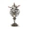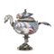 Porta dolci in argento a foggia di animale fantastico, poggiante su di una base ovale con pietre incastonate, corpo finemente decorato a smalto, cimasa sul coperchio rappresentata da arpia in argento.