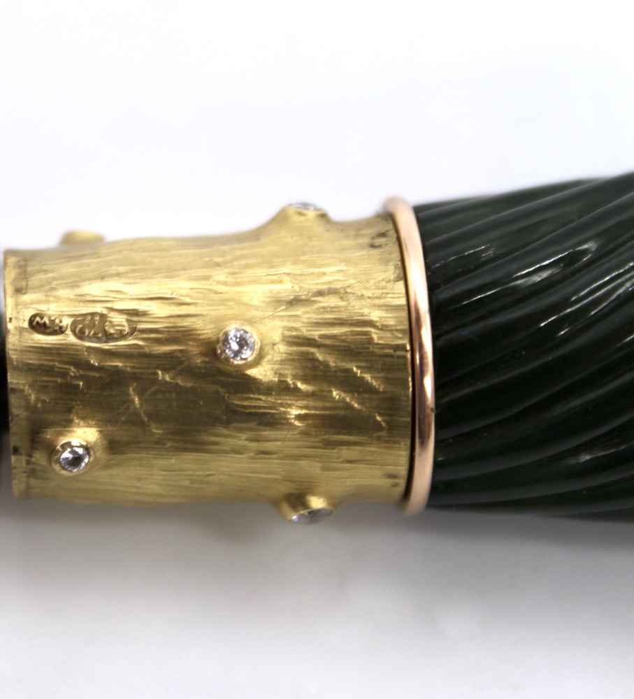 Tagliacarte con parti in oro e sette brillanti incastonati