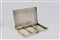In argento filettato con fascia centrale liscia in oro, entro astuccio in cuoio originale.