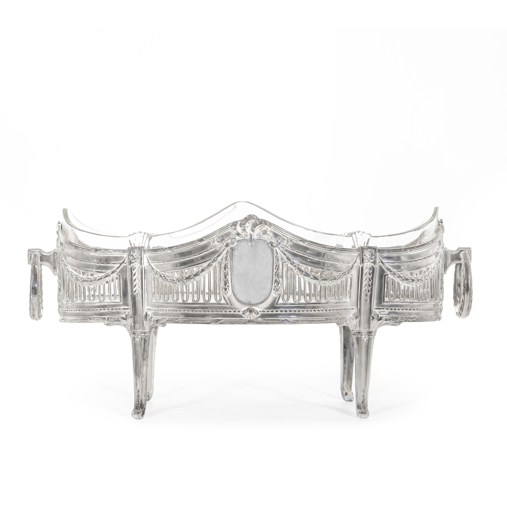 Centro tavola in argento con contenitore in cristallo