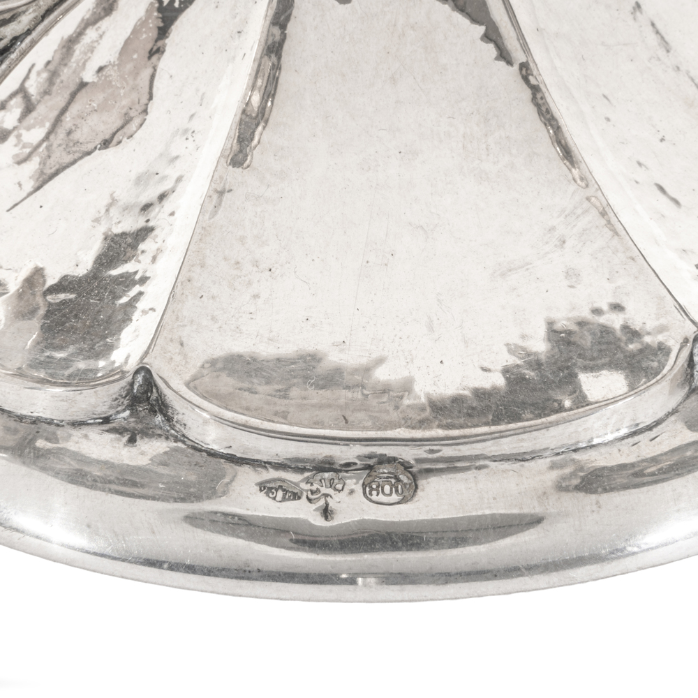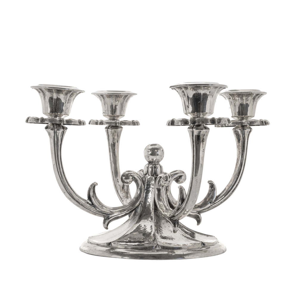 Coppia candelabri in argento a quattro fiamme, con base circolare sagomata.