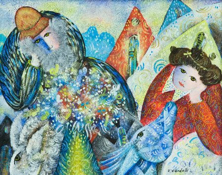 Raimondo Cardelli Figure Olio su tela, cm. 40x50 Firmato in basso a destra.