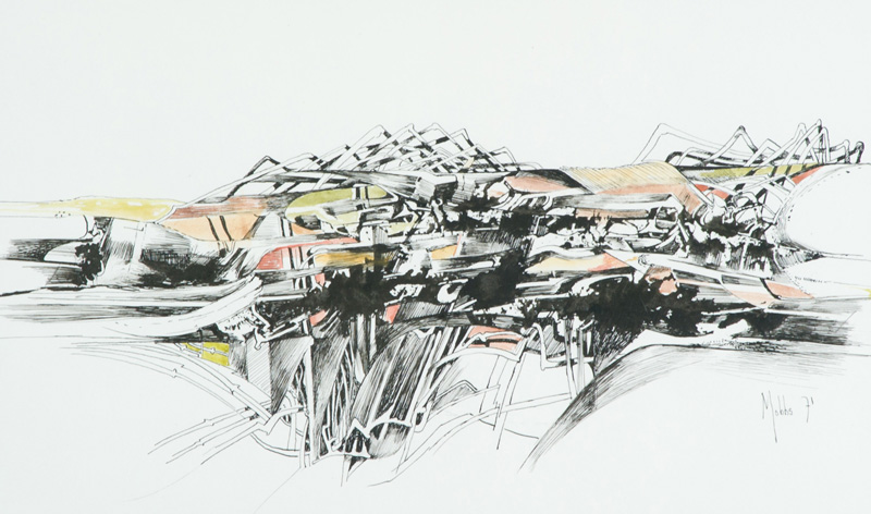 Brian Mobbs Senza titolo, 1971 China e acquerello su carta, cm. 21,5x36 Firma e data in basso a destra.