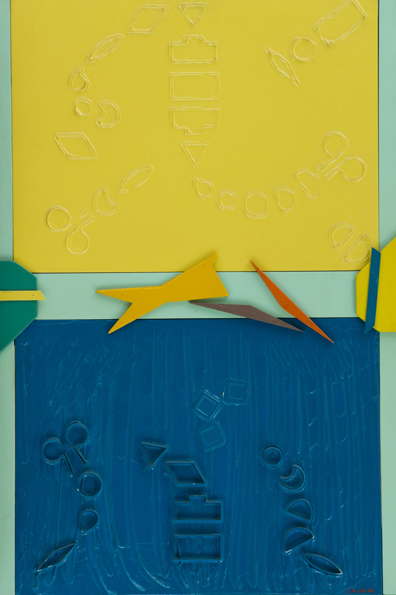 Giancarlo Caldini Palude astratta Olio e assemblaggio su tavola, cm. 66x45 Sul verso: firma e titolo.
