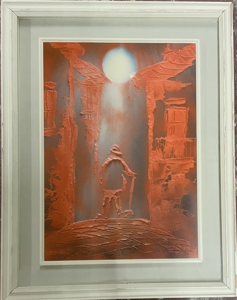 Firma indecifrata "Senza titolo" tecnica mista su masonite cm 64x45 firmato in