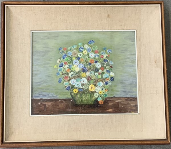 Ignoto del XX Secolo "Fiori in un vaso" olio su tela (cm 24x30) siglatoR.G. in
