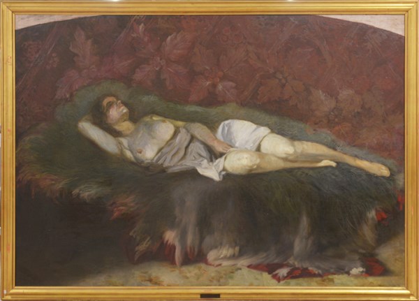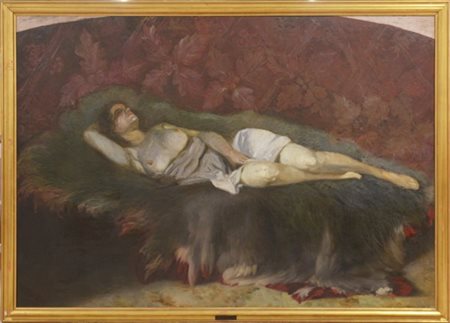 Ignoto del XIX Secolo "Donna sdraiata" olio su tela (cm 140x193) in cornice (d