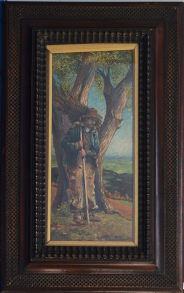 "Contadino" olio su tela applicata a tavola (cm 50x21.5) Firmato in basso a sinistra. In cornice