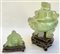 Lotto composto da un Buddha in pietra dura verde ed incensiere con coperchio, basi in legno.