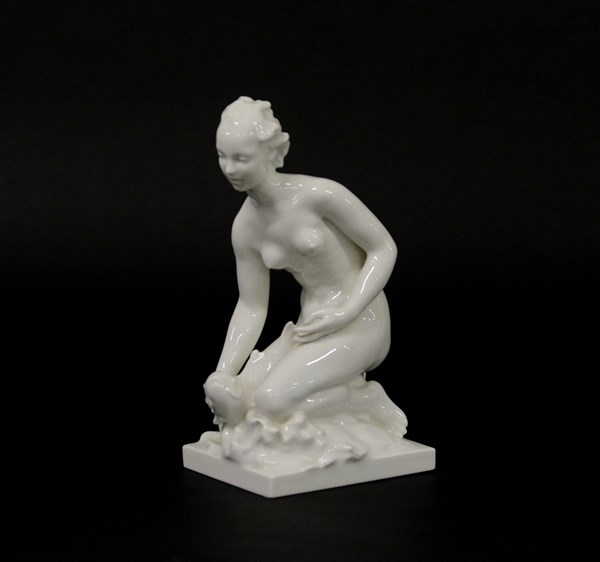 Manifattura di Berlino "Donna con pesce" scultura in porcellana bianca (h cm 25