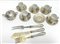 Lotto composto da una zuccheriera biansata con coperchio e cinque tazzine con piattini in argento e porcellana (gr 400) uniti a tre posate da portata in argento e metallo (difetti)