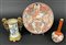 Lotto composto da un vasetto a bottiglia, un piatto a decoro policromo e un por