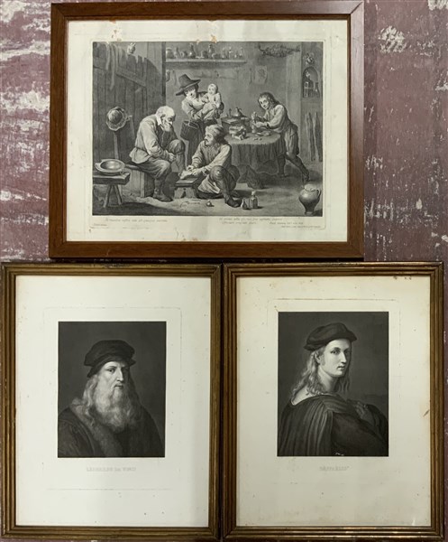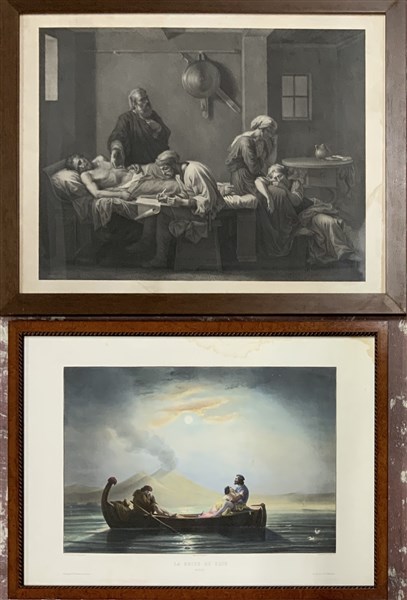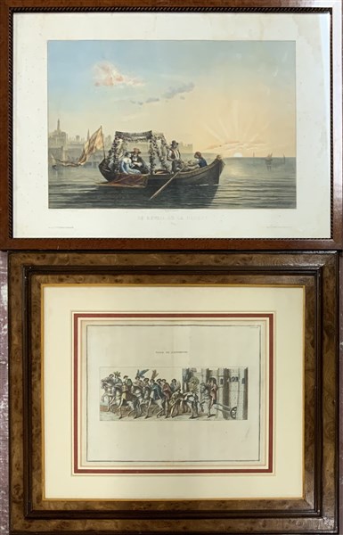 Lotto composto da due litografie a colori e cinque incisioni di soggetti, epoch