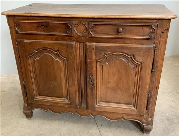 Credenza in noce a due ante e due cassetti pannellati, secolo XVIII (cm 138x111