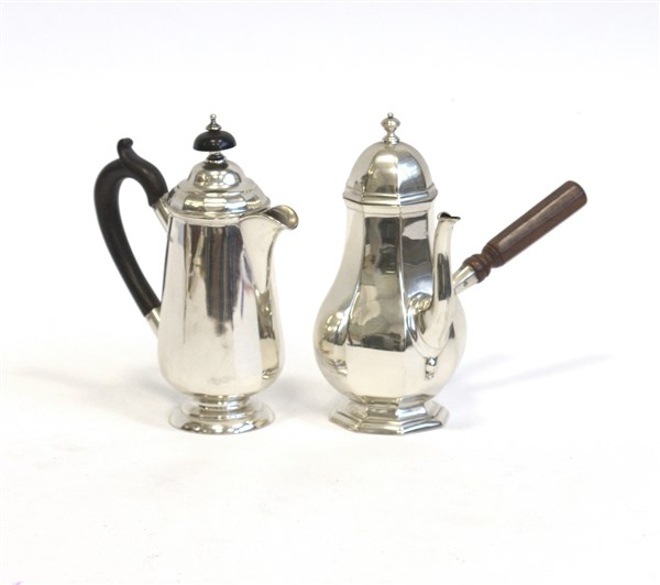 Lotto composto da due caffettiere in argento a corpo sagomato e anse in legno (