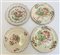 Lotto di quattro antichi piatti in maiolica con decori floreali policromi (d ma