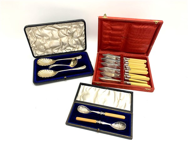 Lotto 309 | Lotto composto da tre custodie contenenti posate di diverso decoro in argento e