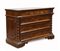 Antico cassettone in noce a quattro cassetti riquadrati e lastronati in radica,