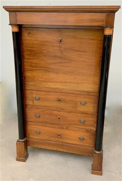 Secretaire in noce a tre cassetti, anta ribaltabile con all'interno vani e cas
