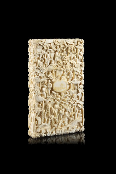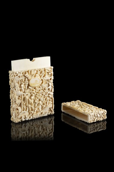 Lotto 450 | Portabiglietti da visita in avorio finemente traforato con scena animata tra pa
