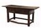 Antico tavolo in noce a tre cassetti nella fascia,gambe a pilastro riunite da t