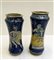 Due albarelli in maiolica decorata nei toni del blu e giallo a figure classiche