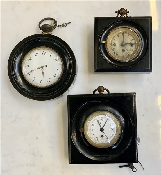 ANONIMO Lotto di tre orologi da carrozza con cassa ebanizzata di cui due con su