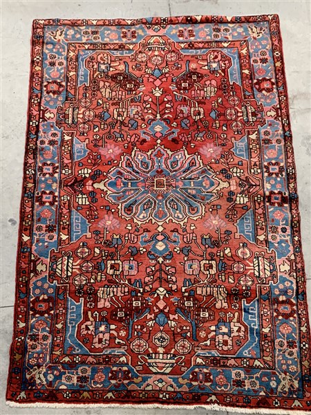 Tappeto Bachitari, Persia, secolo XX. Decoro con medaglione azzurro su fondo ro