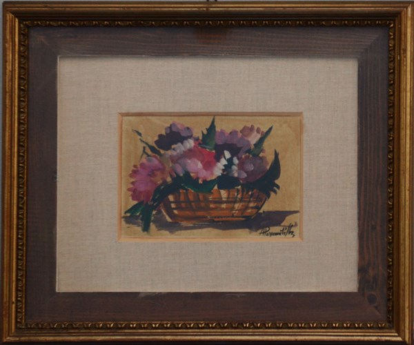 "Cesto di fiori" acquerello su carta (cm 11x16,5) firmato in basso a destra