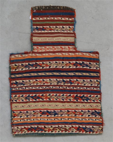 Borsa confezionata per il trasporto del sale. Decoro a fasce policrome. Persia, secolo XX (cm 62x43) (Lievi difetti)
