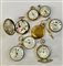 Lotto composto da otto orologi da tasca in metallo argento e altri materiali, dimensioni diverse (difetti)