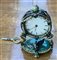 Piccolo orologio da scrivania in metallo dorato e decorato da perline.