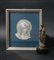Lotto composto da una figura in bronzo raffigurante Madonna in preghiera ed una placca in lamina d'argento raffigurante volto, in teca (difetti)