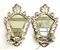 Coppia di ventole a due fiamme in ceramica decorata in policromia a fiori. Portacandele sagomate sorrette da mascheroni (h cm 50) (difetti)