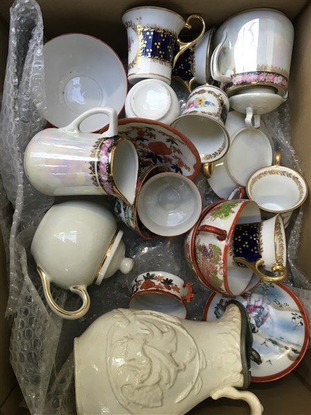 Manifatture diverse. Lotto composto da numerose parti di servizi ed oggetti vari prevalentemente tazzine con piattini in ceramica e porcellana policroma (difetti)