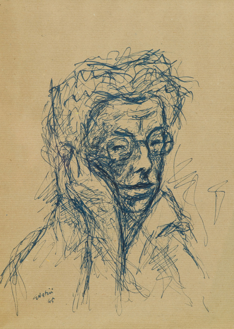 Gualtiero Nativi Ritratto, 1945 China su carta, cm. 34x24 Firma e data in basso a sinistra. Autentica dell'Archivio Gualtiero Nativi su foto con timbro a secco, firma "Berto Nativi" e Archivio n° D4588.