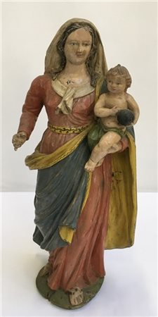 Arte della fine del sec. XVIII "Madonna con bambino" scultura lignea decorata in policromia (h cm 44)(difetti)