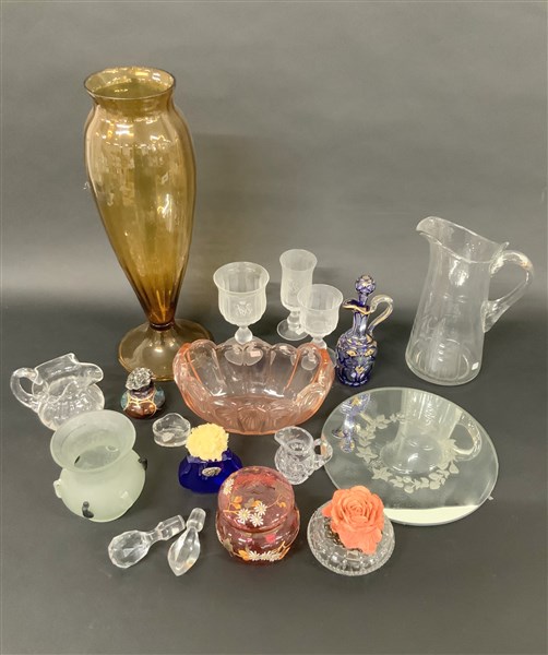 Lotto di numerosi oggetti in vetro e cristallo di diverso decoro ed epoca (dife